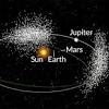 Asteroid in Jupiter's orbit goes its own way IN REVERSE Jupiter's trip around the sun is accompanied by many asteroids (white), which travel in the same direction as the planet.